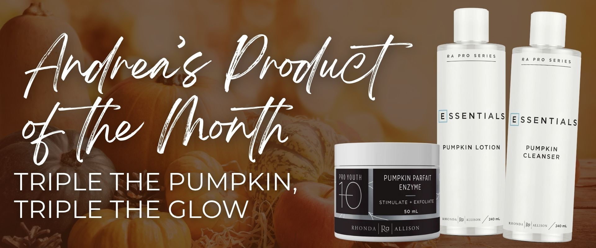 Andrea’s fall favorite is back, this time with triple the radiance! Treat your skin to the nourishing benefits of the Rhonda Allison Pumpkin Cleanser, Pumpkin Lotion, and Pumpkin Parfait Enzyme. This antioxidant-rich trio works in harmony to cleanse, tone, and gently exfoliate, leaving your skin soft, bright, and beautifully balanced.